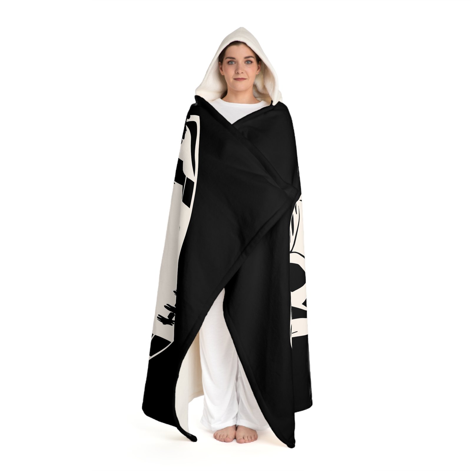 – Cream-colored sherpa fleece hood for added warmth
