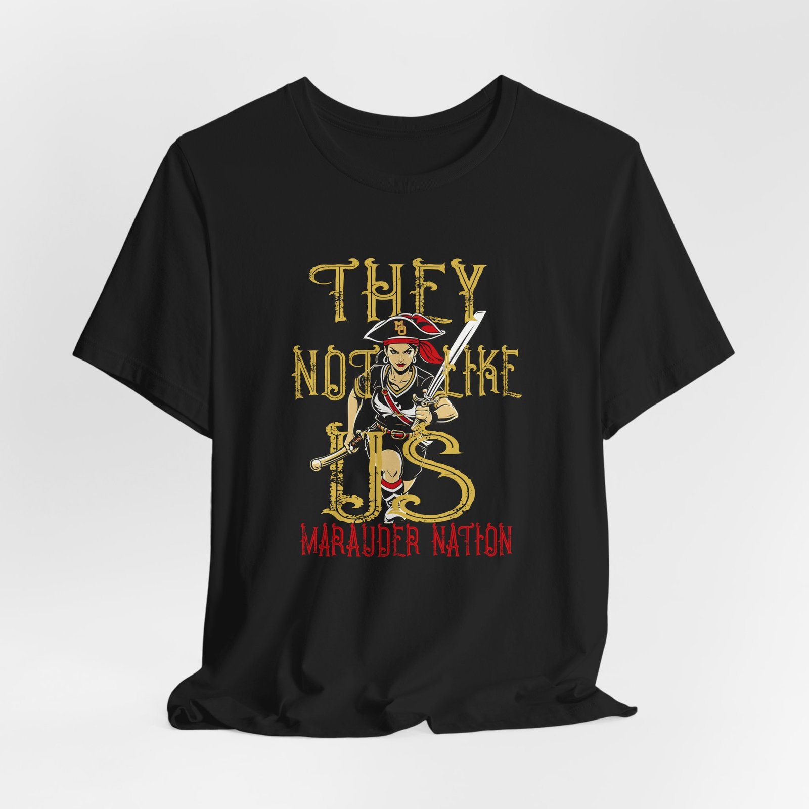 Be the first to review “Marauder Nation Lady Pirate Tee – ‘They Not Like Us’ Graphic Shirt”
