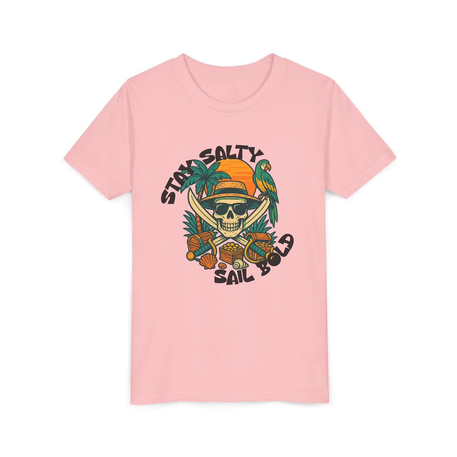 Kids will love this custom youth short-sleeve tee. This lightweight side-seamed shirt maximizes comfort all day long. The ring-spun cotton makes this kids’ short-sleeved tee perfect for displaying custom artwork. Side seams keep the garment’s shape. The shoulders have tape for longer fitting. The collar is extra elastic due to ribbed knitting.