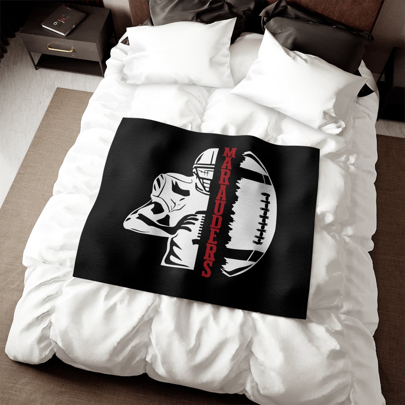 Stay warm and cozy with this Marauders Football Sweatshirt Blanket. Perfect for snuggling up during game nights or chilly evenings, this blanket exudes a sporty and team spirit vibe. Ideal for football fans and sports enthusiasts, this blanket is a great addition to your living room or man cave decor. Perfect for football season, game days, and tailgating parties.